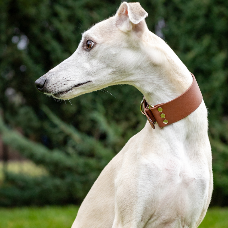 Stylowy i funkcjonalny design obroży szerokiej w kolorze karmelowym