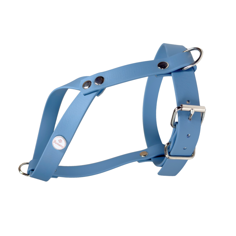 Szelki zostały wykonane z oryginalnej taśmy BioThane®, która łączy w sobie trwałość tworzyw sztucznych z elegancją skóry. Odporna na warunki atmosferyczne, błoto i wodę, nie nasiąka zapachami i jest łatwa w czyszczeniu – wystarczy wilgotna ściereczka.