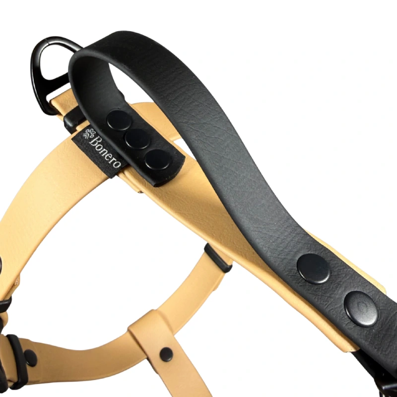 Dodatkowym atutem jest mocna, wygodna rączka wykonana z BioThane® umieszczona na plecach – idealna do szybkiego przytrzymania psa przy nodze w sytuacjach awaryjnych (np. przy czekaniu na windę, przechodzeniu przez ulicę lub mijaniu innych psów). Szelki dla psa to wasza wygoda i styl. Rączka jest dość sztywna i znajduje się na szczycie szelek, umożliwia to szybkie i komfortowe trzymanie psiaka. Rączka będzie szczególnie dobrym rozwiązaniem jeśli Twój pies jest rasy średniej lub dużej.